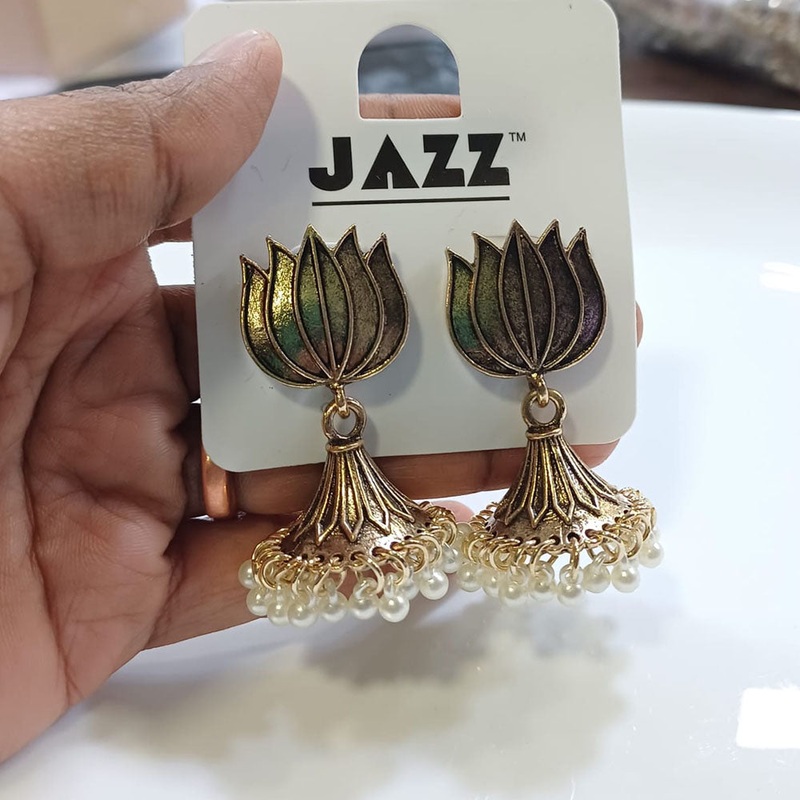 Enhance your outfit with the beautiful Tarohi Jewels Gold Plated Pearls Jhumki Earrings . Made with high-quality materials, these earrings feature an eye-catching design with a unique gold finish and a stunning Pota stone. Elevate your style with these elegant earrings.Note: Image may be vary slightly from the actual product.
