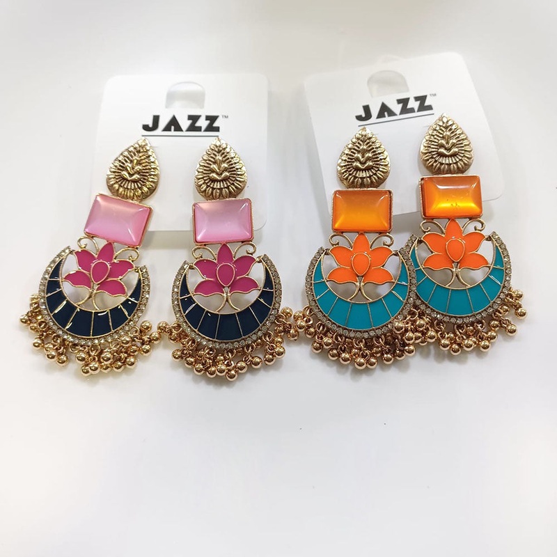Elevate your look with Tarohi Jewels Gold Plated Pota Stone And Meenakari Fancy Dangler Earrings. Plated with , these earrings add a touch of glamour to any outfit. With its unique design and sturdy construction, these earrings are the perfect addition to your jewelry collection.Note: Image may be vary slightly from the actual product.