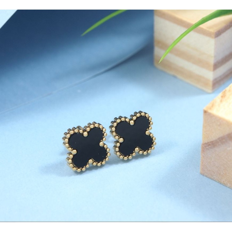 Tarohi Jewels Stainless Steel Anti Tarnish Black and White Clover Stud Earrings – STNER 5338
