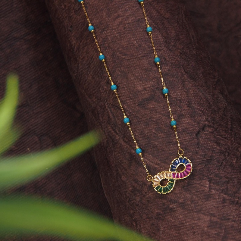 Be the first to review “Tarohi Jewels Stainless Steel Colourful Infinity Pendent Pearl Chain Necklace – STNK 4981”