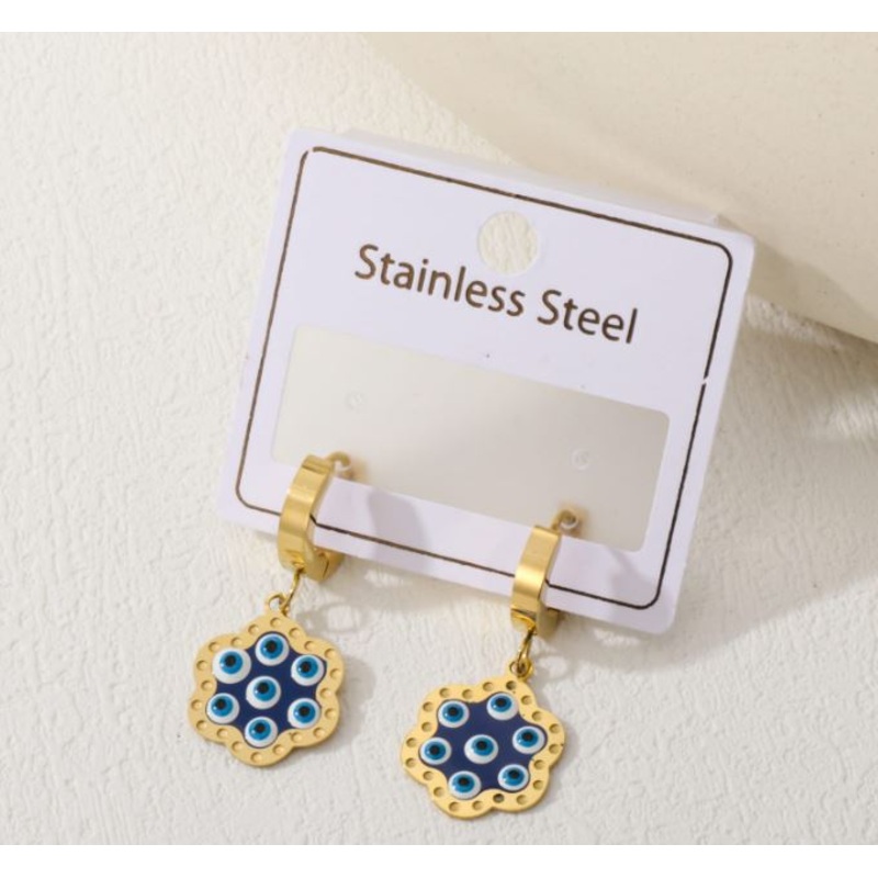 Tarohi Jewels Stainless Steel Floral Shape Evil Eye Enamel Hoops Earring – STNER 5060