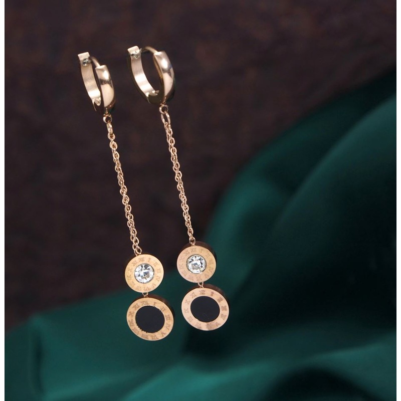Be the first to review “Tarohi Jewels Stainless Steel Rosegold Plated Dual Roman Numerals Disc Chain Earring- STNER 2752”