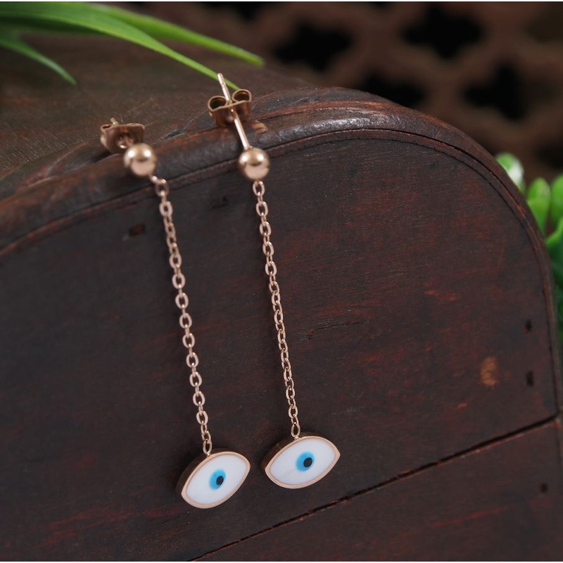 Tarohi Jewels Stainless Steel Rosegold Plated Evil Eye Chain Dangle Earring- STNER 4051