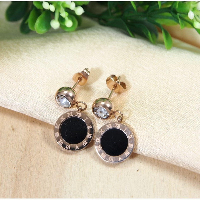 Be the first to review “Tarohi Jewels Stainless Steel Rosegold Plated Roman Numerals Black Disc Earring- STNER 2717”