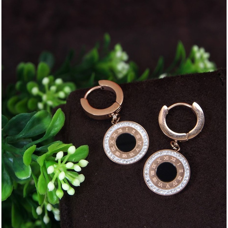 Tarohi Jewels Stainless Steel Rosegold Plated Roman Numerals Hoops Earring-STNER 2768