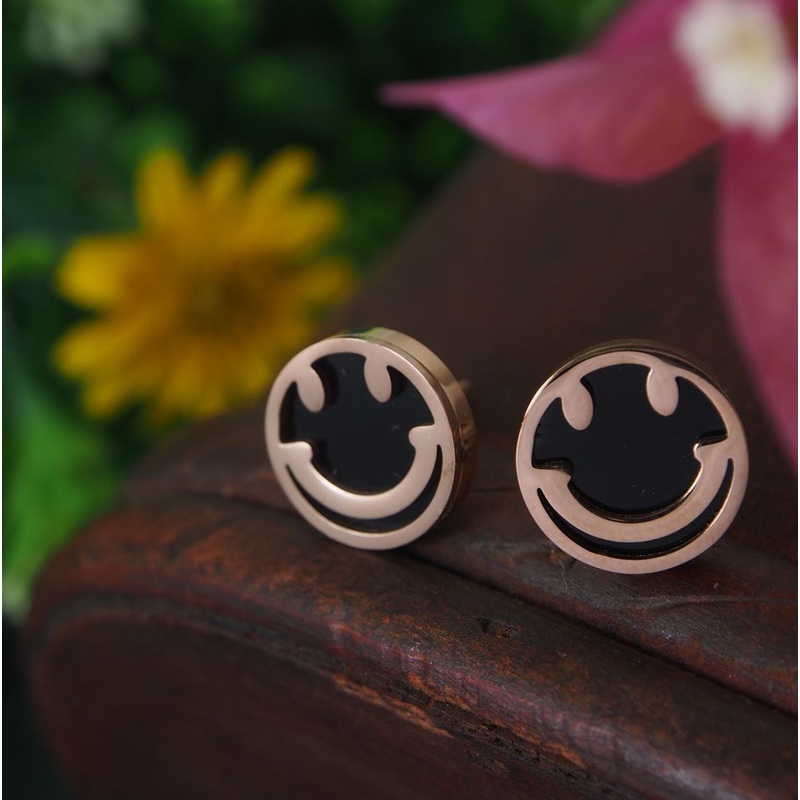 Tarohi Jewels Stainless Steel Rosegold Plated Smiley Face Stud Earring-STNER 2889