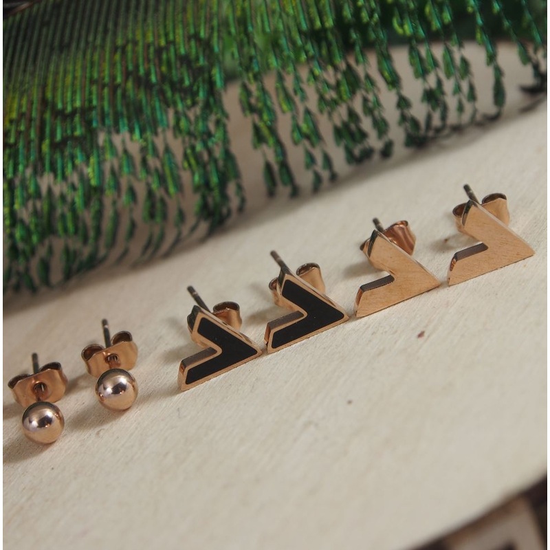 Tarohi Jewels Stainless Steel Rosegold Plated Three Pair ‘V’ Shaped Stud Earring-STNER 2873