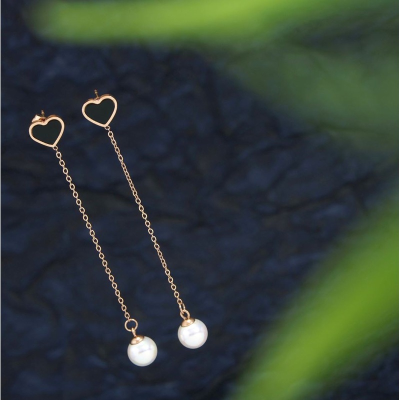 Tarohi JewelsStainless Steel Rosegold Plated Heart Shaped Long Chain Earring- STNER 2694