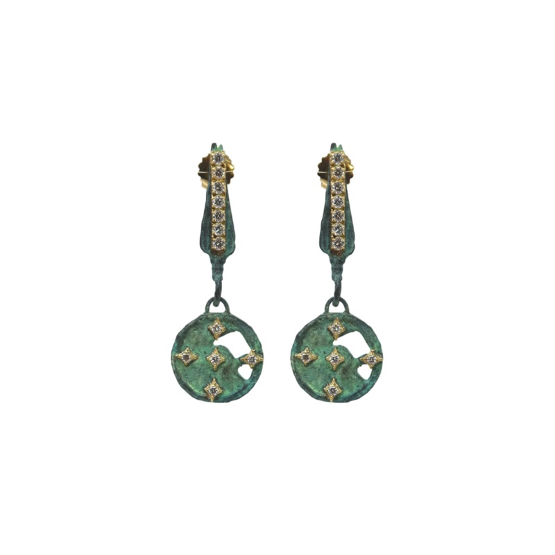 18k Yellow Gold and Artifact Drop Earrings with 1.97 CT White Diamonds.