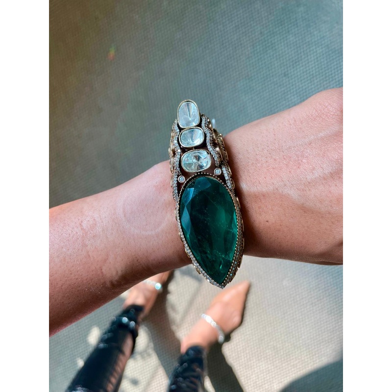 Tear Drop Emerald Dimonte Kundan Victorian Bangle