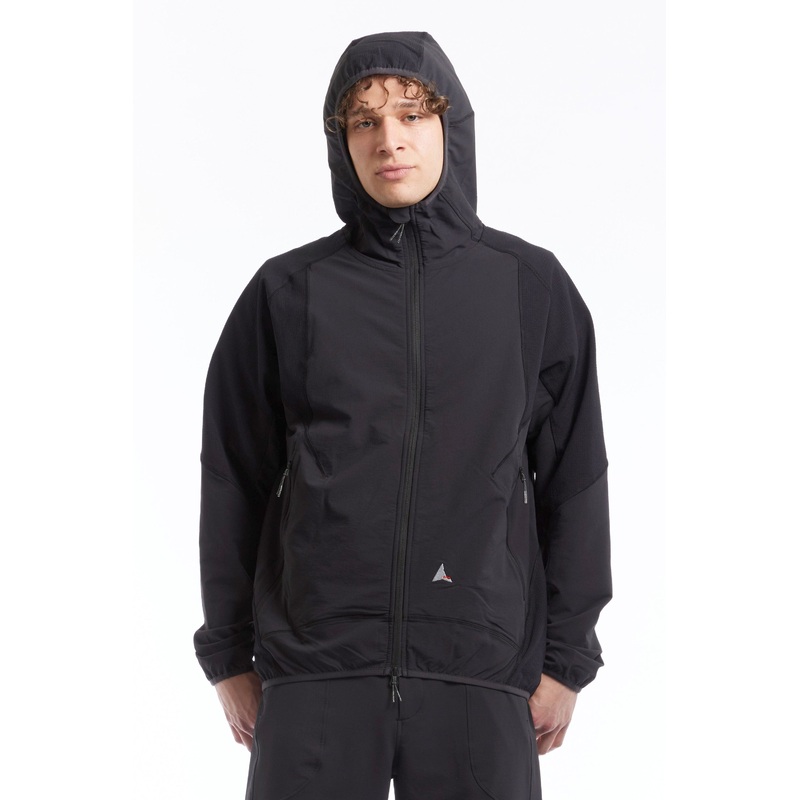Technical reinforced jacket in anthracite colour by Roa Clothing.Employing an extremely lightweight technical nylon shell with reinforced paneling, its weight is reduced and durability improved. Hooded, boxy fit. Zipped centerline opening and two zipped fr