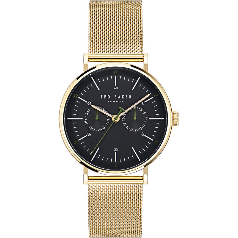 The Ted Baker BKPPGS404 Phylipa is a luxurious watch that combines elegance with contemporary style. Its gold-plated stainless-steel case and matching gold mesh strap create a cohesive and sophisticated look. The striking black dial contrasts beautifully with the gold accents, enhancing the watch’s refined appeal. With a 41mm case size, it offers a bold presence, while 50 meters of water resistance ensures practical durability. This timepiece is perfect for those seeking a blend of high fashion and functionality.- 41mm Case Size – Gold-Plated Stainless-Steel Case and Strap- 50 Meters Water Resistant
