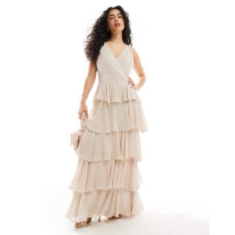Find the best selection of TFNC Bridesmaids chiffon tiered maxi dress in ecru. Shop today with free delivery and returns (Ts&Cs apply) with ASOS!