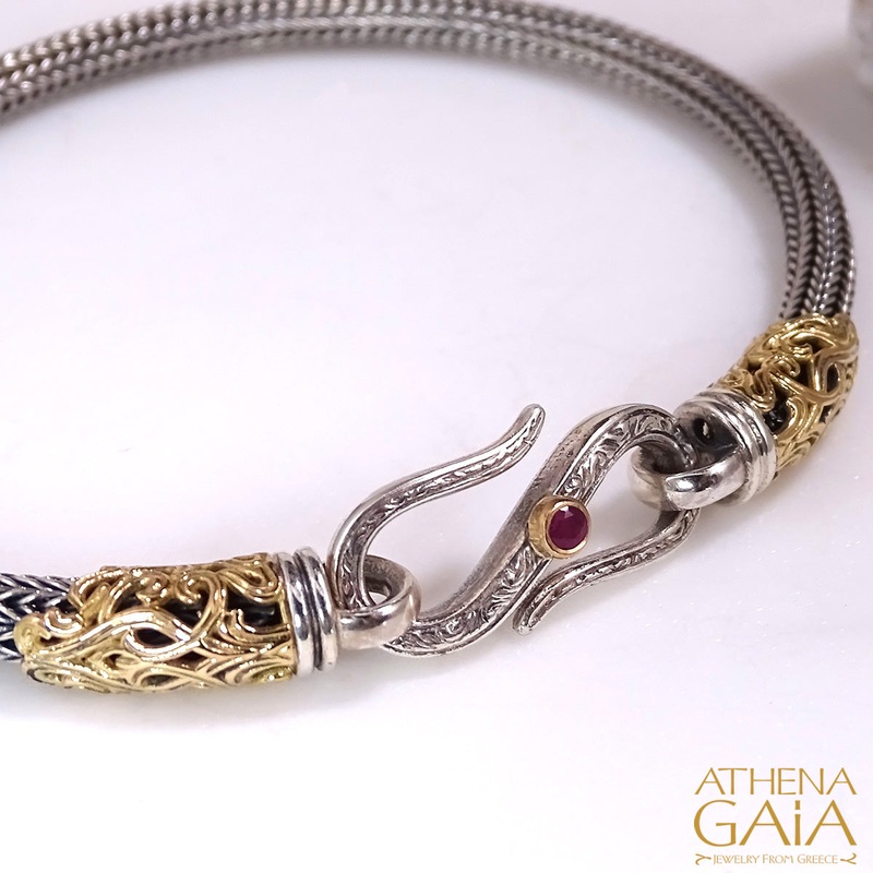 Floral Clasp Silver Strap Bracelet