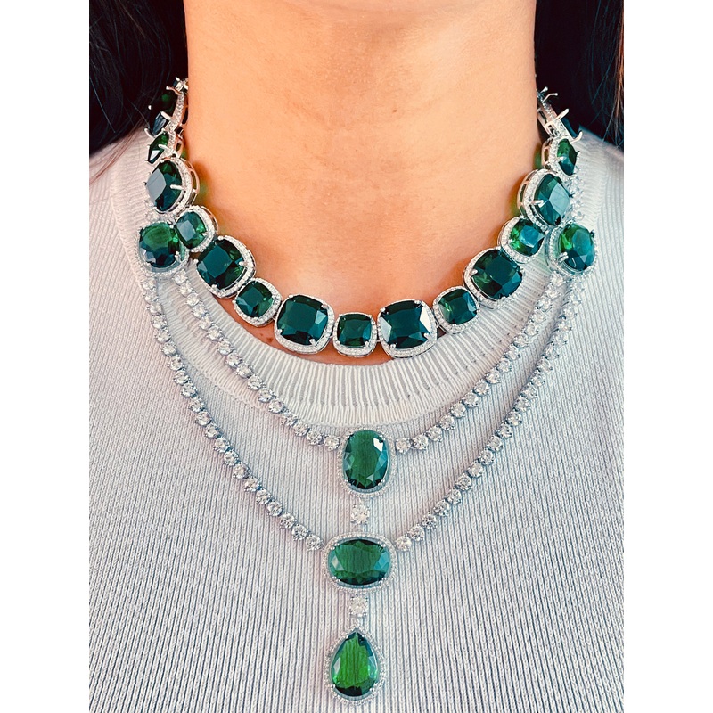 The Sage & Three Layered Diamond and Emerald Set (Earrings & Necklace) are best for all your outfit.