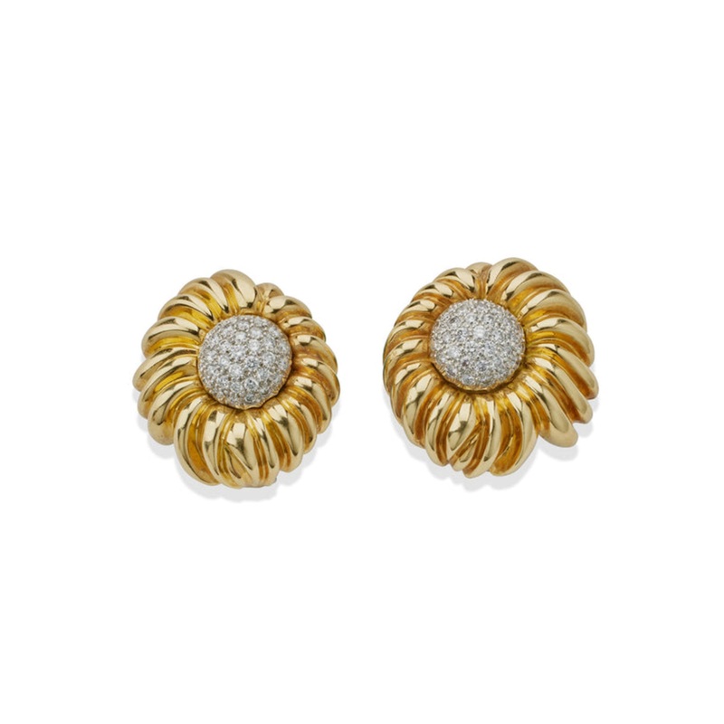 Tiffany & Co. 1970s Platinum & 18KT Yellow Gold Diamond Flower Earrings