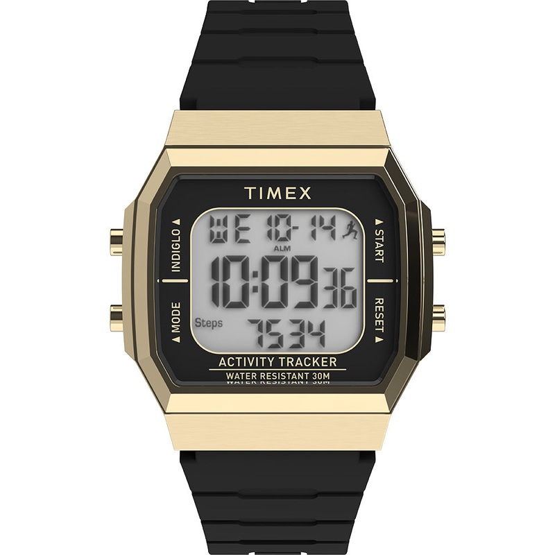 Introducing the Timex Activity and Step Tracker, your essential tool for elevating your wellness journey. With a stylish 40mm gold tone metal case and a comfortable black silicone strap, this watch blends fashion with functionality seamlessly. Designed to optimize every movement, it combines step and activity tracking technology with the convenience of our INDIGLO backlight. With water resistance up to 30 meters, it’s your reliable companion for daily health management. Whether you’re hitting the gym or conquering daily tasks, this watch empowers you to reach your personal best with ease.- Digital – 40mm Case Size – Silicone Strap – Activity Tracker – Step Tracker- 30 Meters Water Resistant