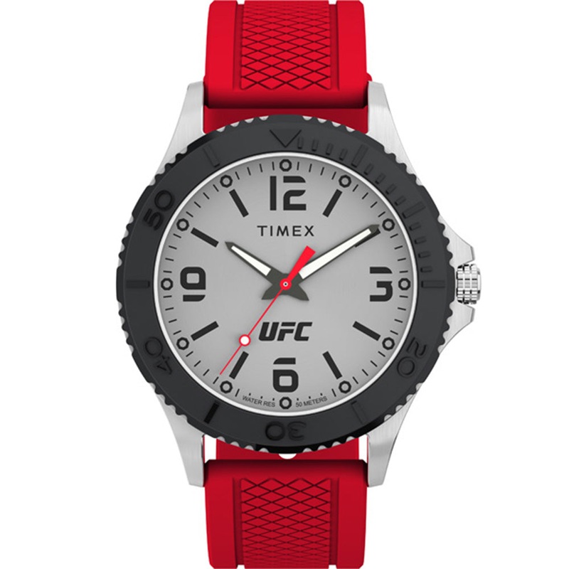 A striking watch that is sure to stand out, the TimexUFC TW2V58200 Gamer Mens Watch is perfect forUFC enthusiasts. Finished with a red silicone bracelet that has a lovely texture, it really stands out, while sitting nicely on the wrist. The dial is crafted with stainless steel and has a wide bezel that boasts a darker tone. Easy to read indices with bold hands and red second hands mean that you can read the time at a quick glance. Unique and masculine, this timepiece is sure to turn heads wherever you go.
