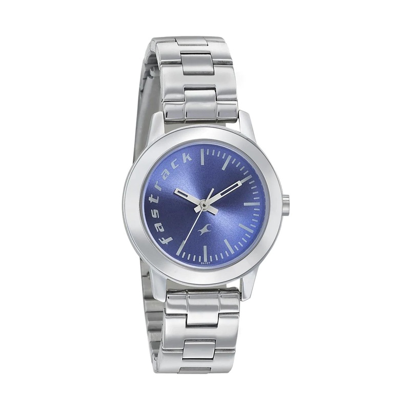 Gender LadiesStrap Material Stainless SteelStrap Color SilverDial Color BlueCase Width 36 mmCase Length 42.5 mmCase Thickness 8.9 mmCase Material BrassMovement QuartzWater Resistance 3 ATMWarranty Period 24 Months