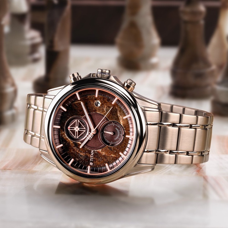 Gender MenStrap Material Stainless SteelStrap Color BlackDial Color BrownCase Width 44.6 mmCase Length 51.50 mmCase Thickness 13.30 mmCase Material Stainless SteelCase Shape RoundMovement QuartzWater Resistance 5 ATMWarranty Period 24 Months