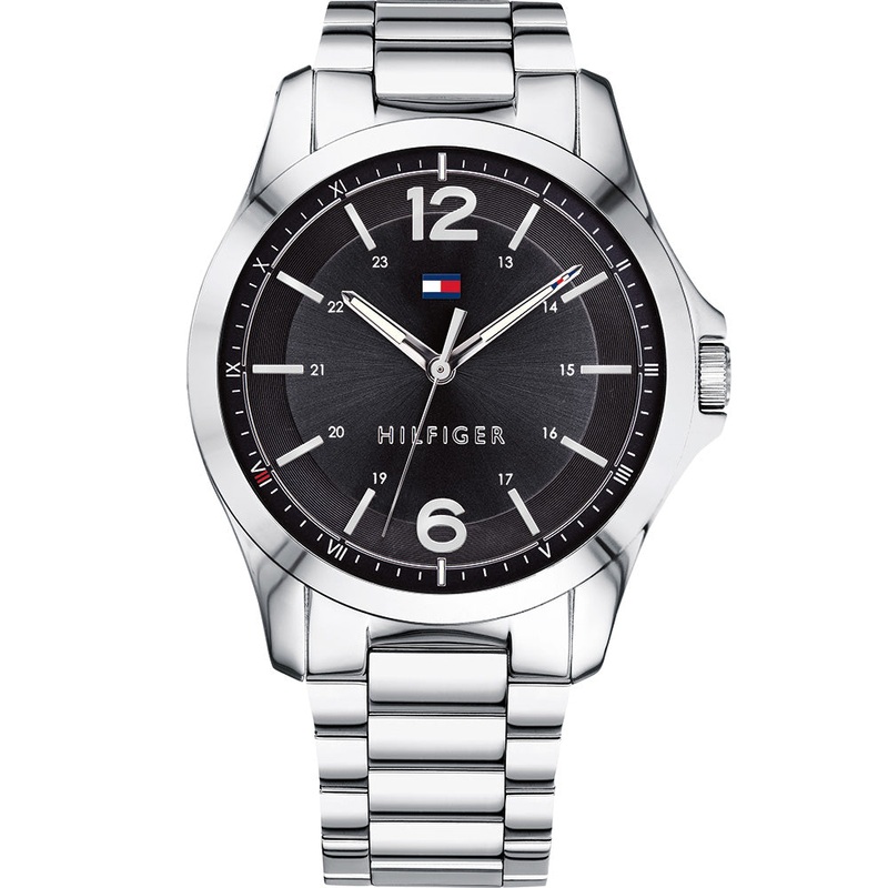 Introducing the Tommy Hilfiger 1791460, a perfect fusion of sophistication and modernity. This watch features a polished silver case and a striking black dial, complemented by a sleek stainless-steel bracelet for a contemporary look.Equipped with a reliabl