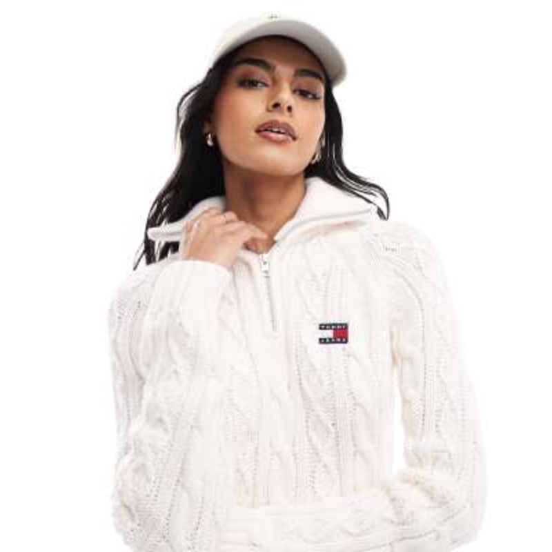 Find the best selection of Tommy Jeans cable knit quarter zip sweater in off-white. Shop today with free delivery and returns (Ts&Cs apply) with ASOS!
