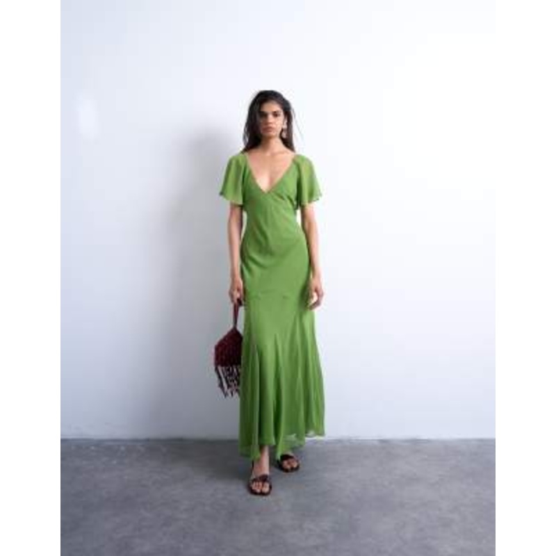 Find the best selection of Topshop flutter sleeve godet hem midi dress in green. Shop today with free delivery and returns (Ts&Cs apply) with ASOS!