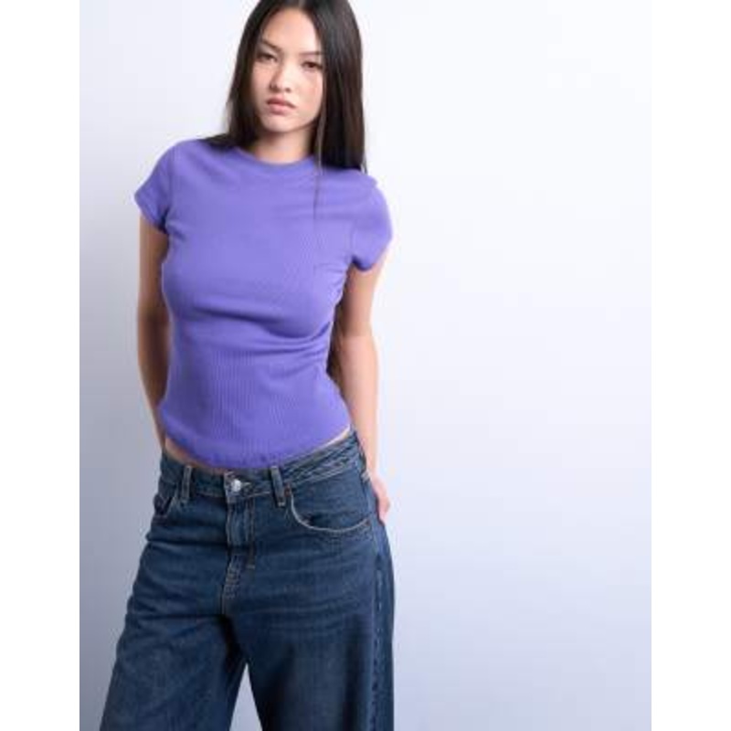 Find the best selection of Topshop rib knit fitted curved hem tee in purple. Shop today with free delivery and returns (Ts&Cs apply) with ASOS!