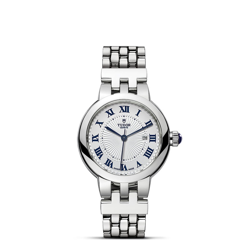 The Clair de Rose line, reimagined in a classic, refined and timeless spirit, uses the brands historic aesthetic codes. The Clair de Rose collection is available exclusively in steel and in six configurations and three sizes, 26, 30 and 34mm in diameter, it presents opaline dials with delicate decorations in relief, punctuated with blue lacquered Roman numerals or diamonds. This year, a new TUDOR Blue dial option is available for the Clair de Rose in all sizes.