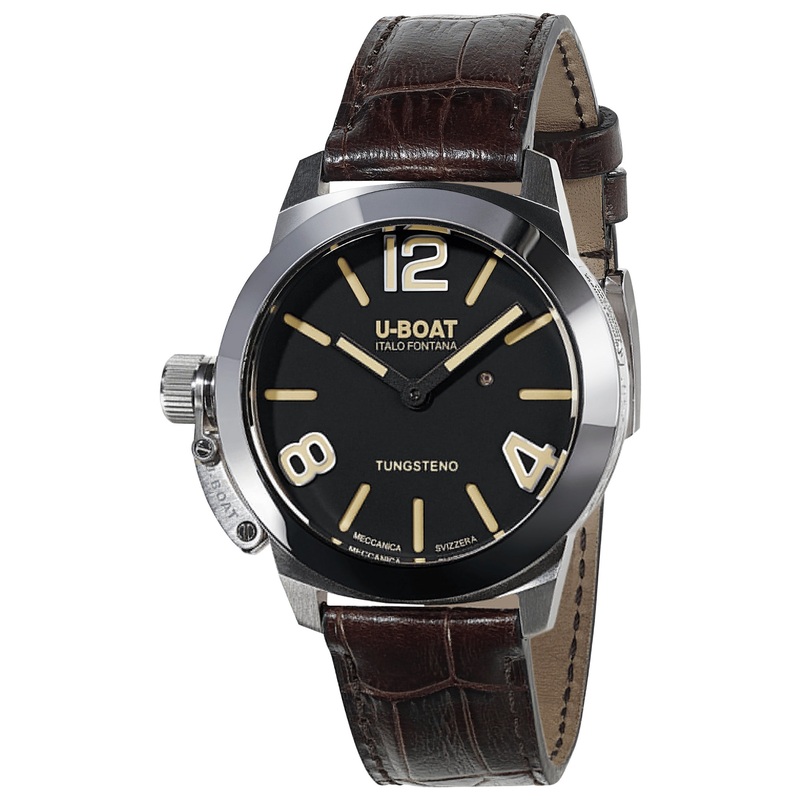 U-Boat Classico Stratos Manual Wind Stainless Steel Black Dial Brown Leather Strap Mens Watch Model# 9002