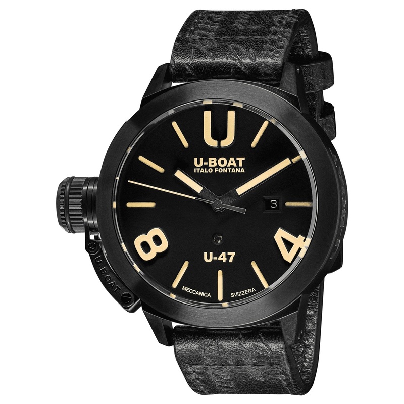 U-Boat Classico U-47 AB1 Automatic Black PVD Black Dial Black Leather Strap Date Mens Watch Model# 9160