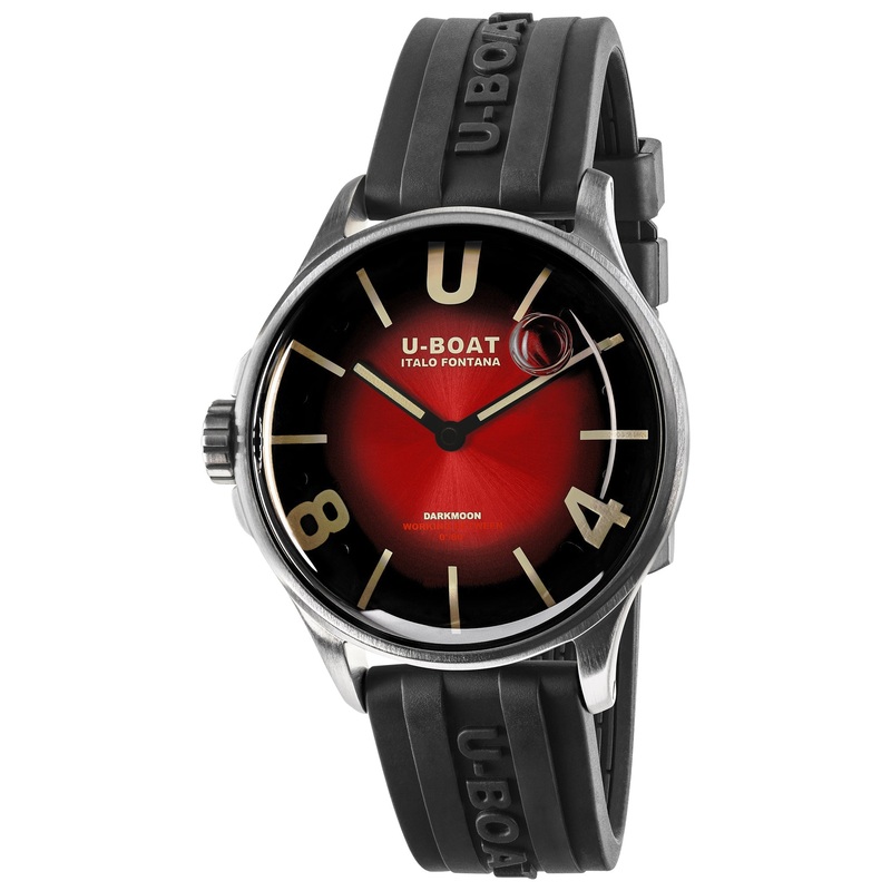 U-Boat Darkmoon Stainless Steel Red Dial Black Rubber Strap Quartz Mens Watch Model# 9500