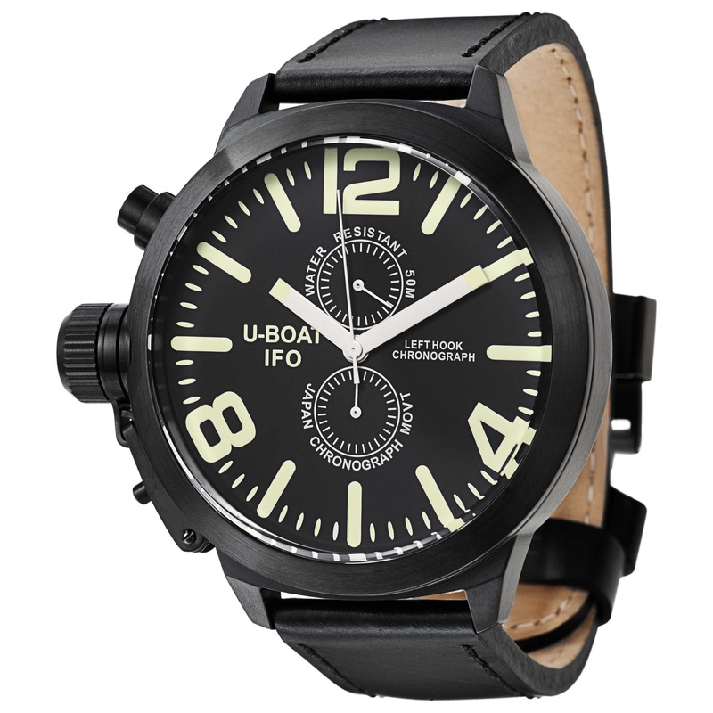 U-Boat, Left Hook IFO, Men’s Watch, Stainless Steel Black Ion Plated Case, Leather Strap, Japanese Quartz (Battery-Powered), 7250