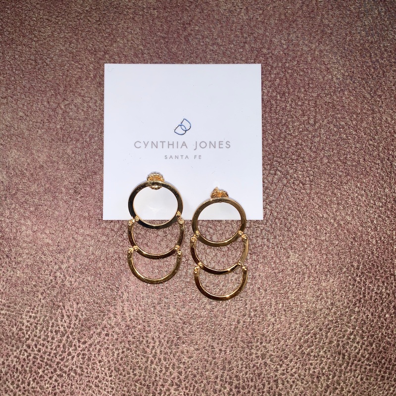 The sculptural qualities of this dangling piece make it a sure statement earring. Enjoy the fluid movement on your ear as you work the room. A large circle anchors the two hanging halfmoons, accented with handcrafted rivets for an extra special detail.