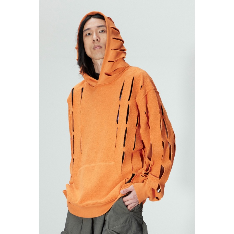 – Upcycled hooded sweatshirt.