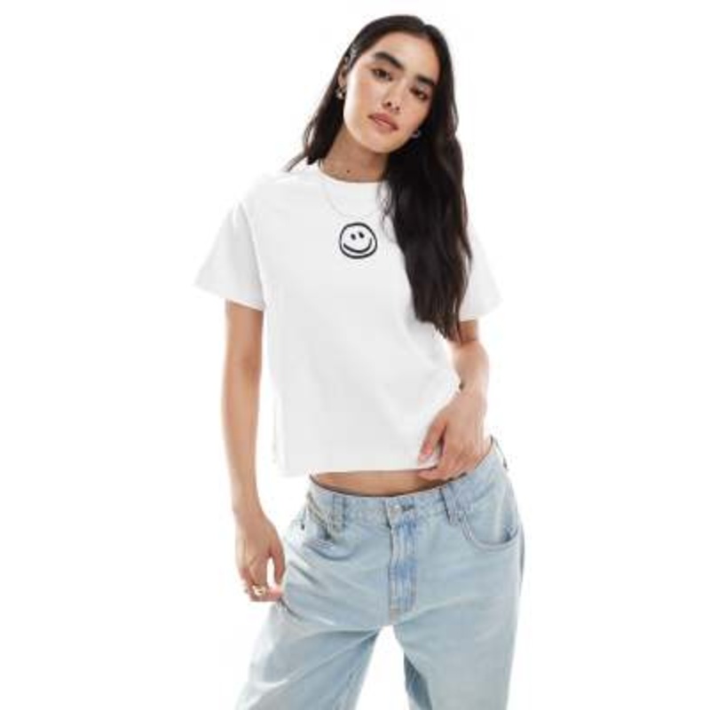 Vero Moda boxy tee with smile face graphic in white