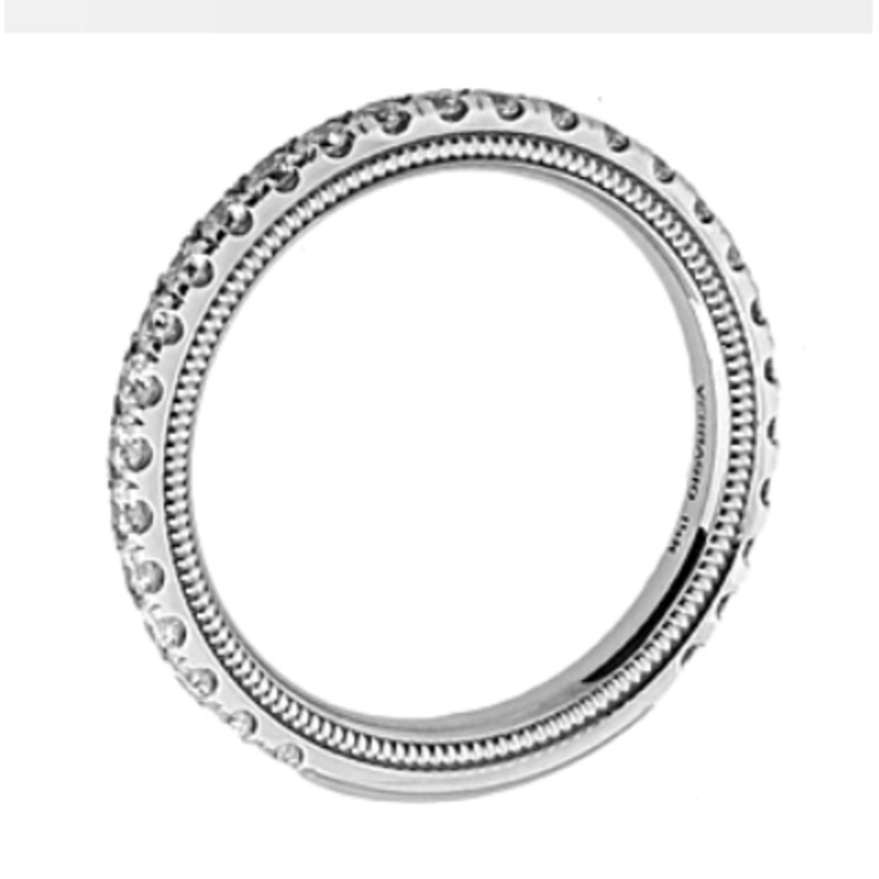 Ladies Verragio diamond band in 14 karat white gold. Set in the band are 28 round brilliant cut diamonds with a total weight of 0.67 carat.