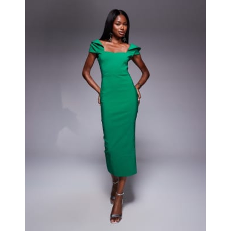 Shop the latest Vesper bengaline bardot drape sleeve detail midaxi dress in emerald trends with ASOS! Free delivery and returns (Ts&Cs apply), order today!