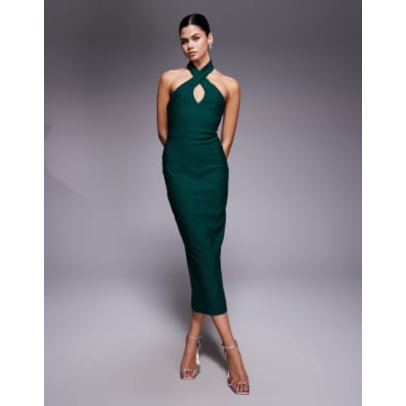 Shop the latest Vesper bengaline cross front halterneck keyhole detail midaxi dress in forest green trends with ASOS! Free delivery and returns (Ts&Cs apply), order today!
