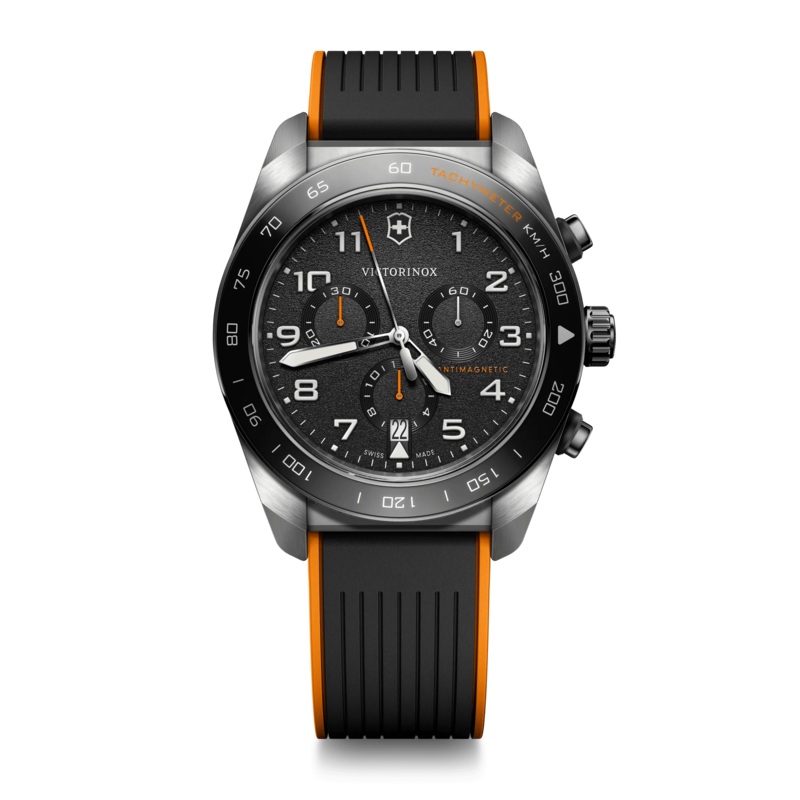 Discover a timepiece with streamlined good looks and uncompromising functionality. The Swiss Army Chrono excels in all capacities: tracking speed, distance and time with exacting precision. Distinguished by its dependable technicality and reliability, its the intelligent choice for athletes, pilots or intrepid global travelers. Keep it close and push your limits.