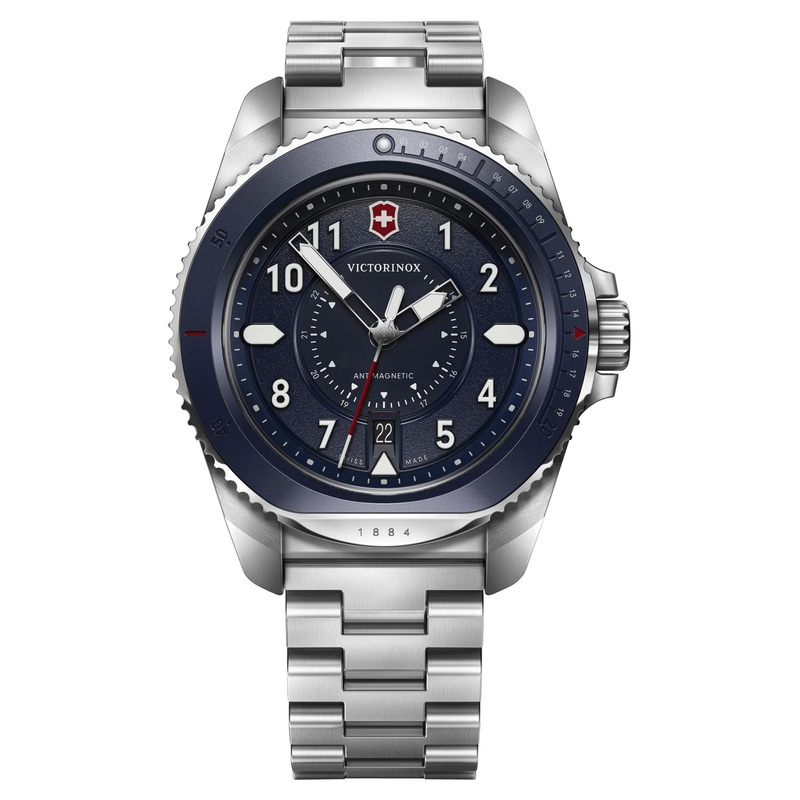 Like all of our watches, this Victorinox Swiss Army Journey 1884 Stainless Steel Blue Dial Date Divers Quartz Mens Watch is brand new and comes in its original packaging.
