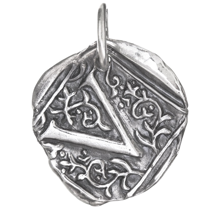 Waxing Poetic Square Initial Charm. Sterling silver. V-DISCONTINUED 0.90″ wide.