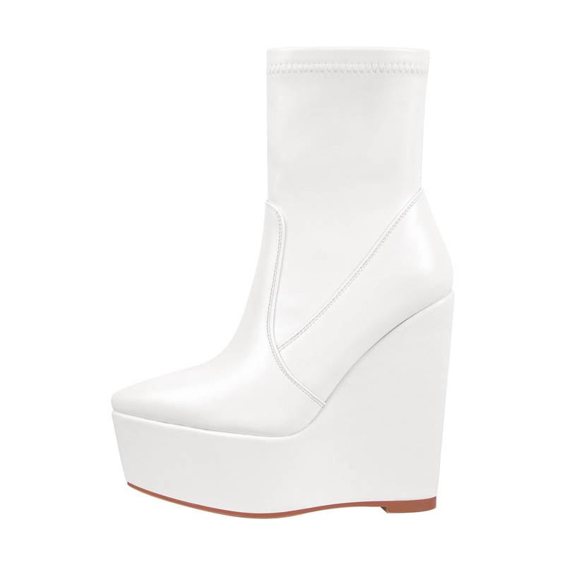 Heel measures approximately: 5.5 in /14cmPlatform measures approximately: 2 in /5 cmMaterial: Vegan LeatherColor: White/BlackCustomer Service please contact US