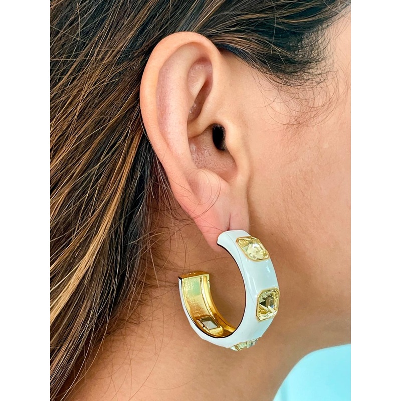 The White Enamel Citrine Dimonte Hoops is something which you will love.Pair the earrings with a choker or long necklace or you can wear the only earrings to make the complete gorgeous statement look! Or just sweep back your hair and wear the style with hi