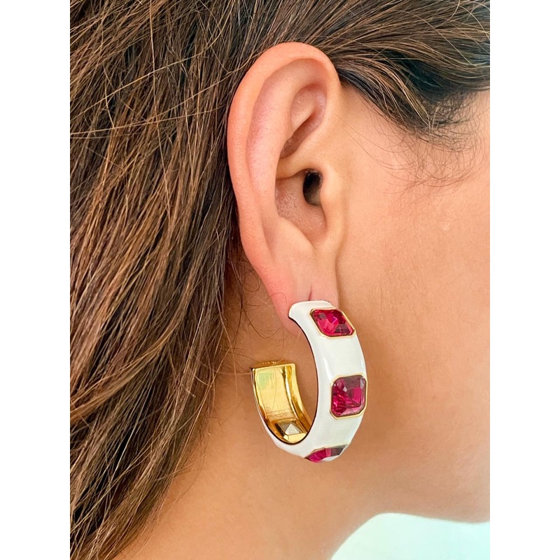 The White Enamel Ruby Dimonte Hoops is something which you will love.