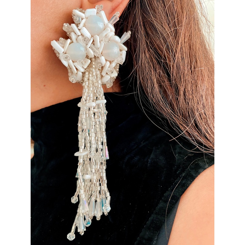 Add a touch of artistry to your look with these hand-embroidered earrings, beautifully crafted with delicate beads and sparkling crystals. Designed to stand out without weighing you down, these lightweight statement earrings offer the perfect blend of bold style and all-day comfort. Ideal for special occasions or elevating your everyday outfit, each pair is a unique, wearable piece of art.