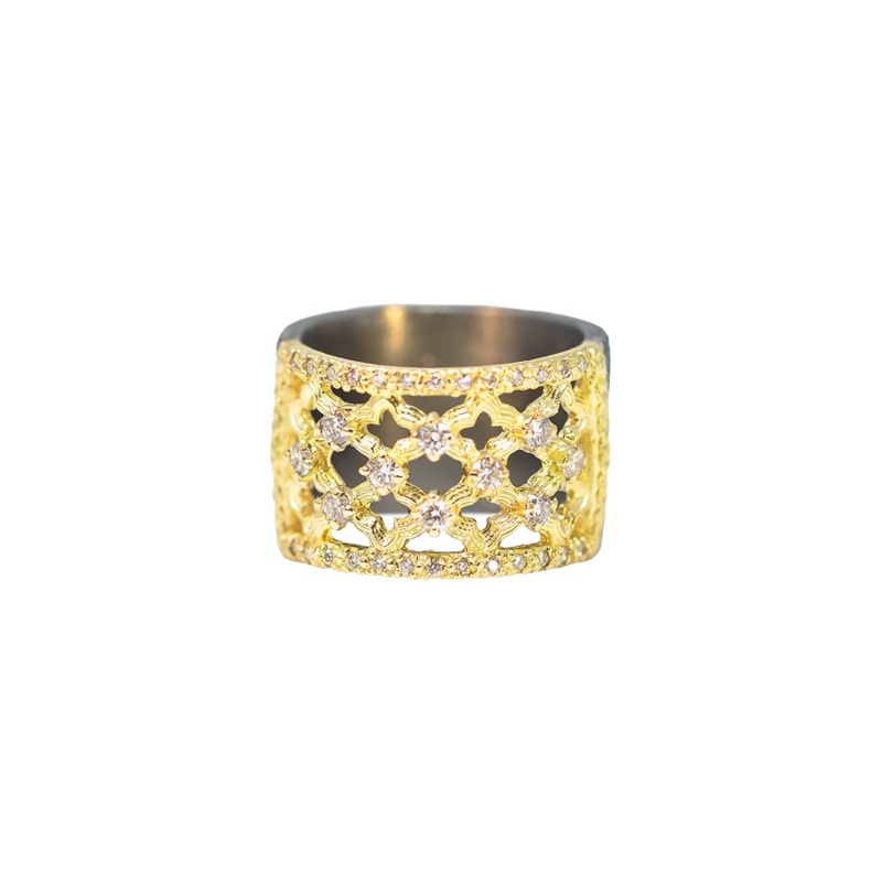 Ring 18kt Yellow Gold and Grey Sterling Silver With 0.456 CT White Diamonds.