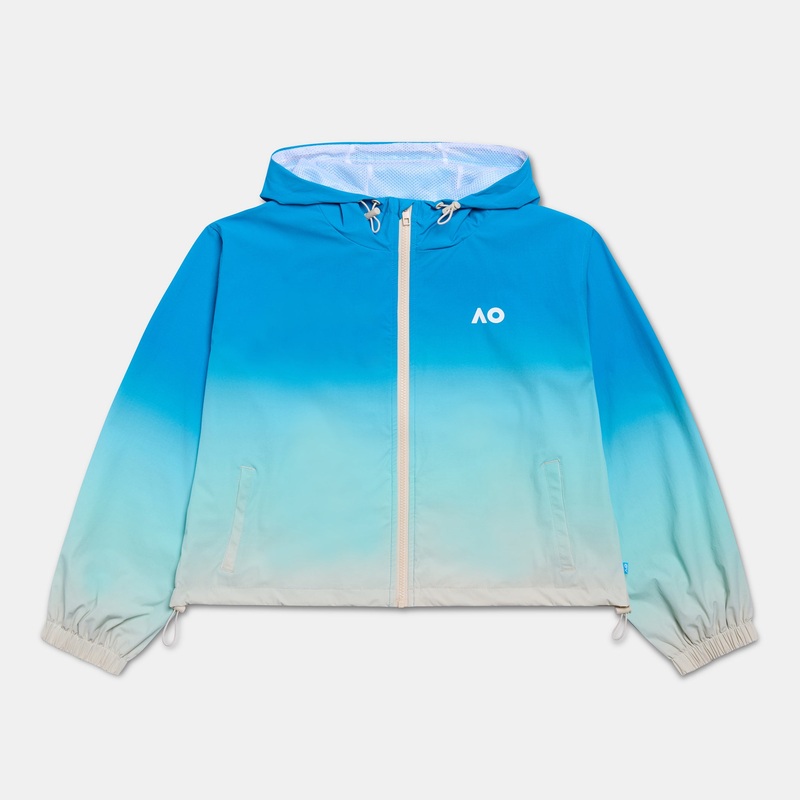 Stay stylish and shielded from the elements with this lightweight and windproof womens jacket. The gradient design, from sky blue to sandy beige, creates a modern and eye-catching look, while the recycled nylon fabric ensures sustainability, durability as well as performance. The hooded mock neckline and front zip closure provide added protection.