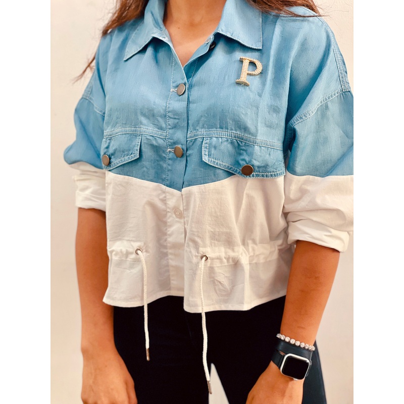 The pendant is detachable and you can wear the shirt with or without the initial. Later, slip the initial on a chain and wear it as a necklace as well. The shirt is with a collar, long sleeves, front patch pocket and front button fastening.