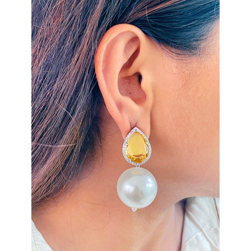 Yellow Pearl Drop Earrings
